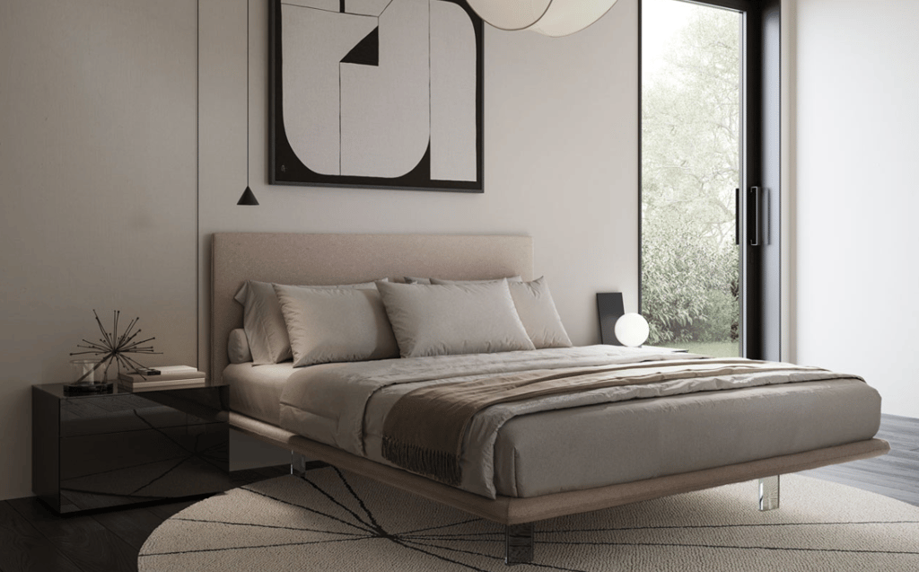 Notre lit double Crystal est parfaitement connecté au style moderne. L'effet élancé des formes est accentué par les pieds en plexiglas qui ajoutent une sensation de suspension et de légèreté.