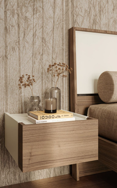 Table de chevet suspendue Medea en noyer blond et blanc lait