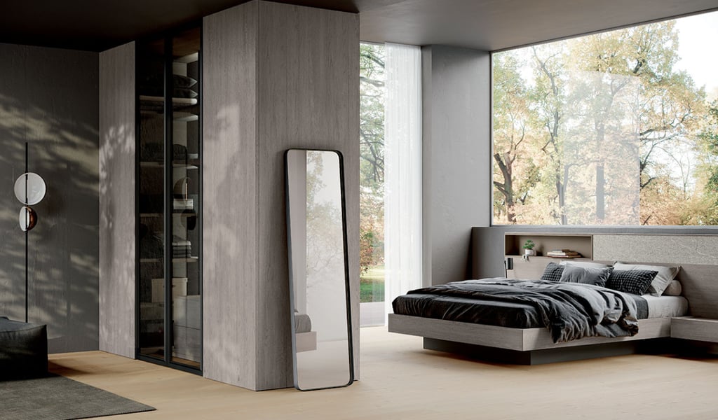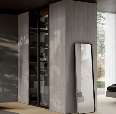 Vous pouvez combiner des portes lisses, avec des portes miroir et des portes vitrées et choisir entre différents types d'ouvertures (poignée ou rainure).