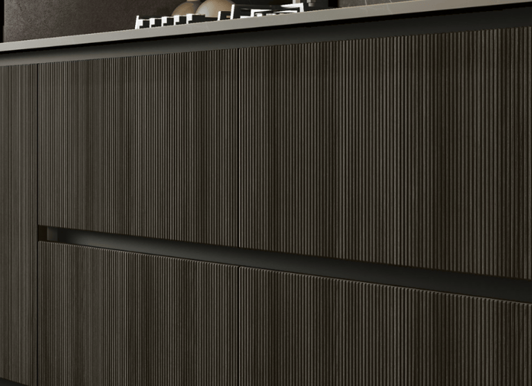 La porte cannelée Solaris est fabriquée à partir de panneaux de MDF de 22 mm d’épaisseur. L’extérieur et les bords sont revêtus d’une seule feuille de stratifié polymère thermoformé. L’intérieur est en mélaminé blanc.