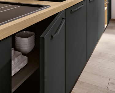 Vega est fabriquée à partir de panneaux de MDF de 22 mm d’épaisseur. L’extérieur est revêtu d’une seule feuille de PET (matériau plastique dépourvu de PVC et 100 % recyclable).