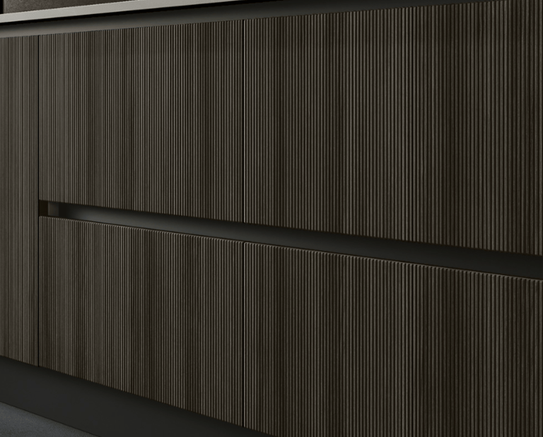 La porte cannelée Solaris est fabriquée à partir de panneaux de MDF de 22 mm d’épaisseur. L’extérieur et les bords sont revêtus d’une seule feuille de stratifié polymère thermoformé. L’intérieur est en mélaminé blanc.